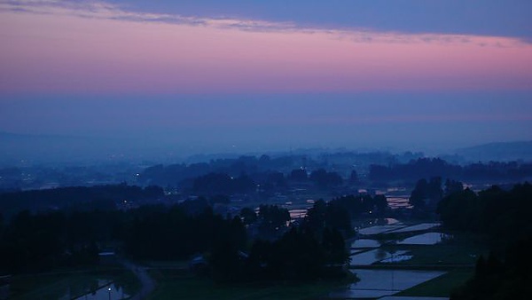 在礪波飯店由於昨晚的早睡,早上四點多起床就睡不著,望著窗外的天狗山發呆,看著鄉間的農田,天色漸漸白
